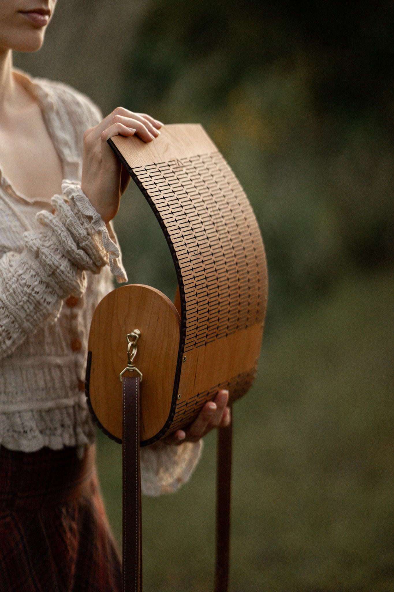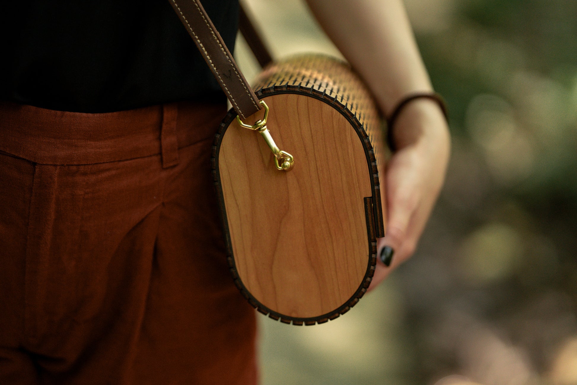 The Iselin Claret is a shoulder bag rooted in nature with its cherry body. The living hinge design along with its hidden magnetic, self-aligning closure allows the bag to open with elegance, and to close with a warm, acoustic click. The bag's interior is lined with matte water buffalo leather and each bag comes with an adjustable leather strap.