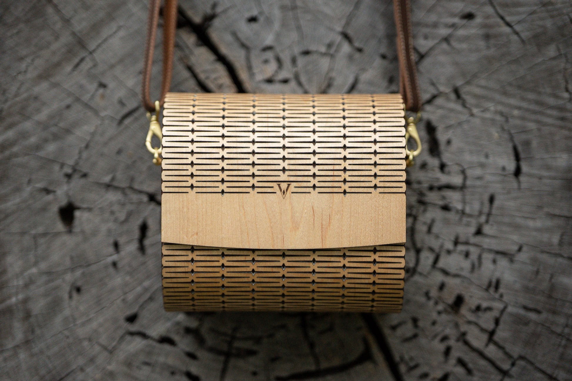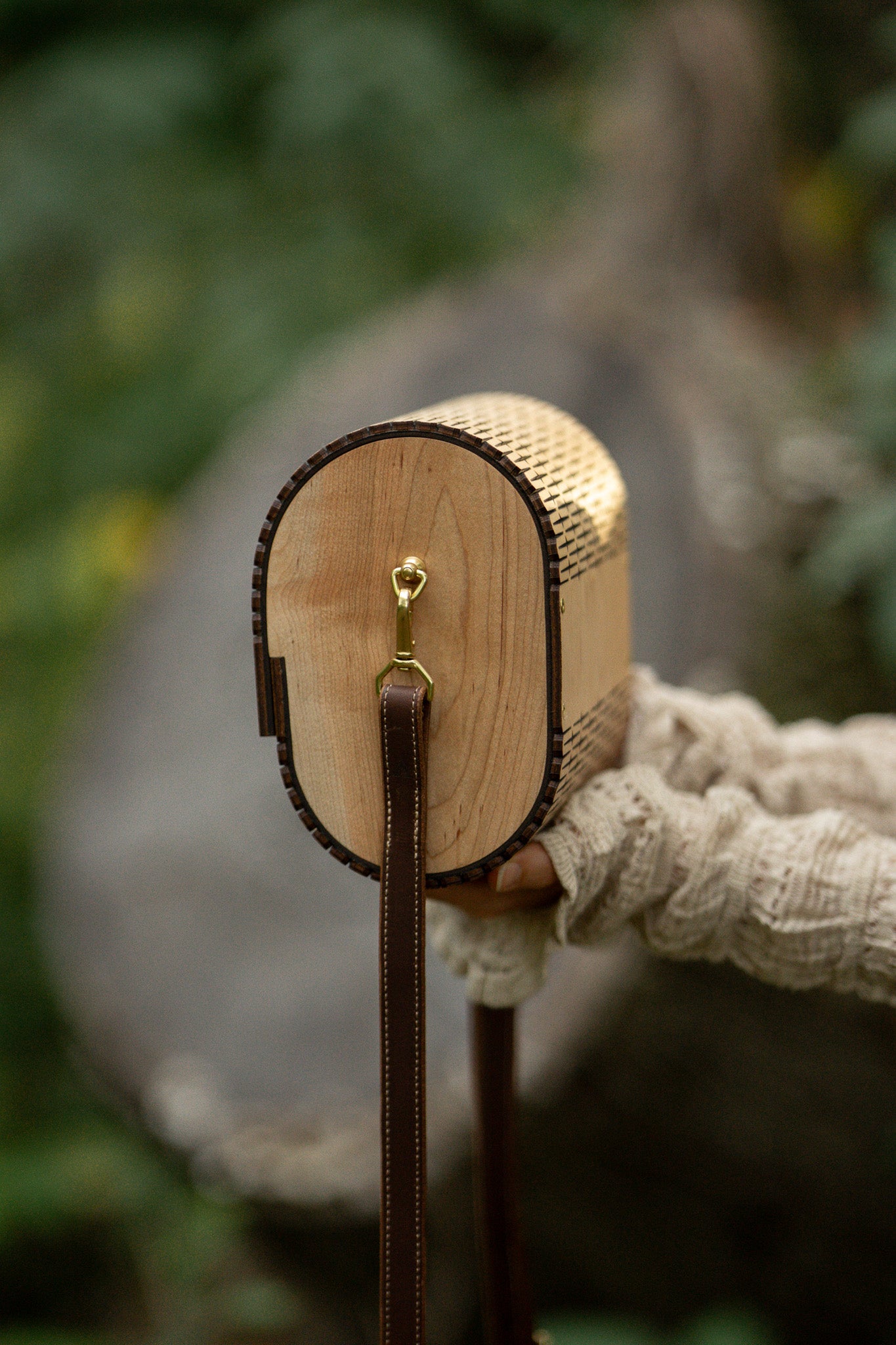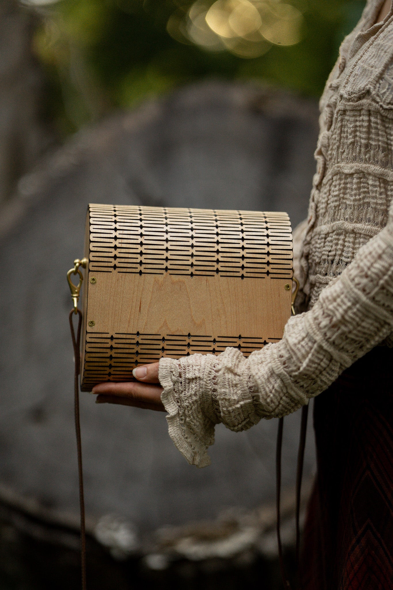 The Iselin Ivory is a shoulder bag rooted in nature with its maple body. The living hinge design along with its hidden magnetic, self-aligning closure allows the bag to open with elegance, and to close with a warm, acoustic click. The bag's interior is lined with matte water buffalo leather and each bag comes with an adjustable leather strap.