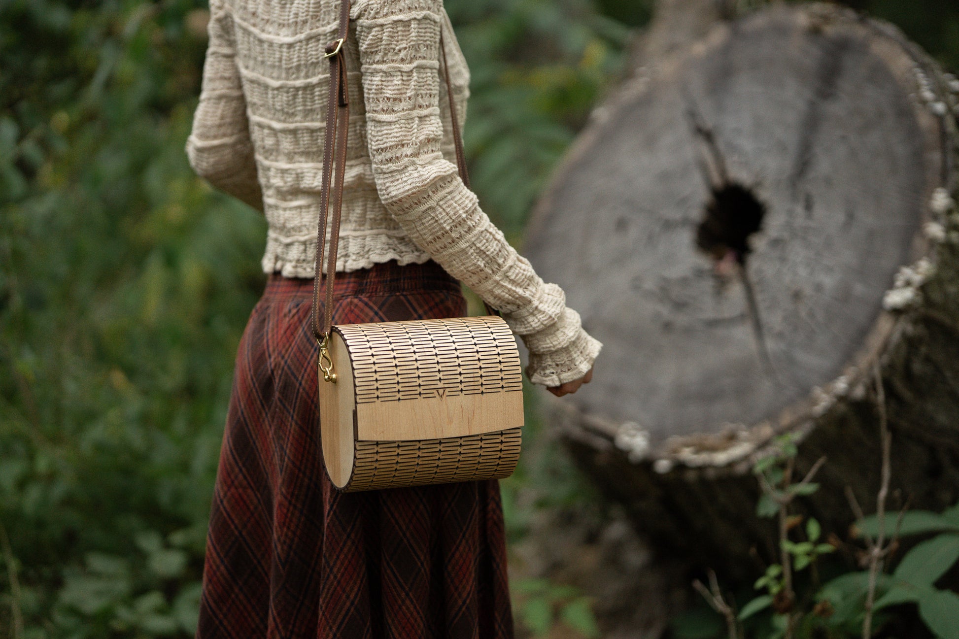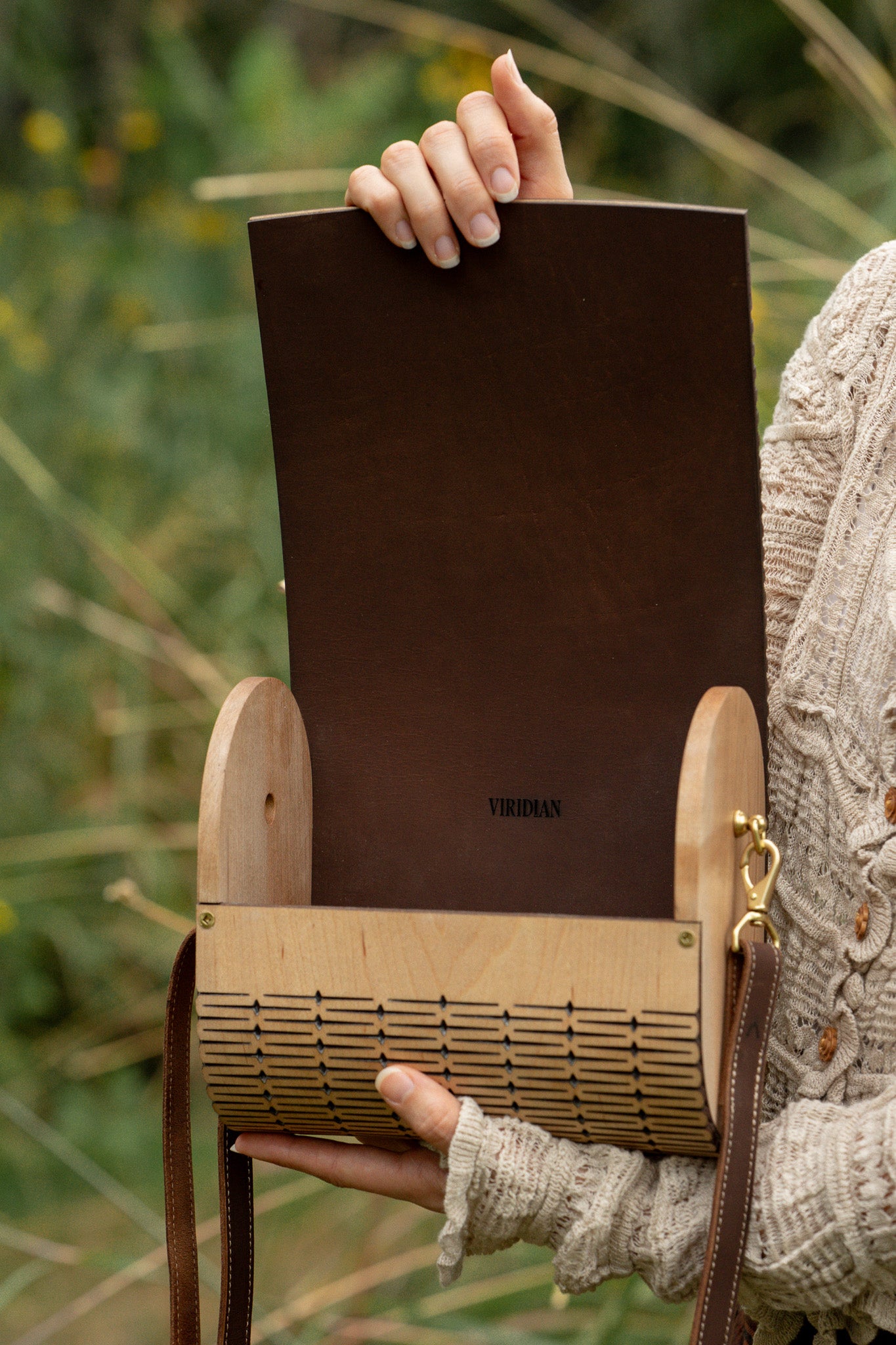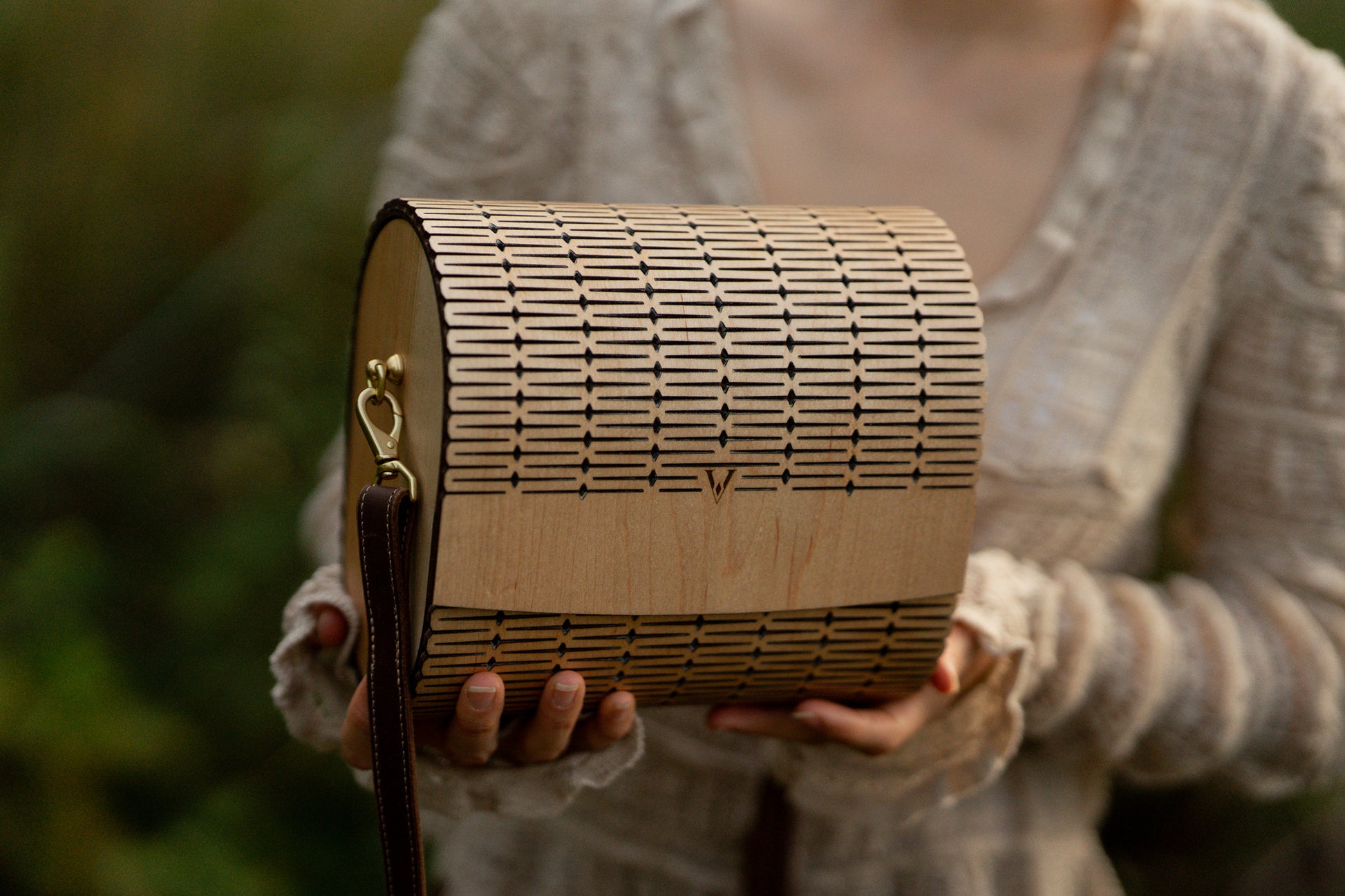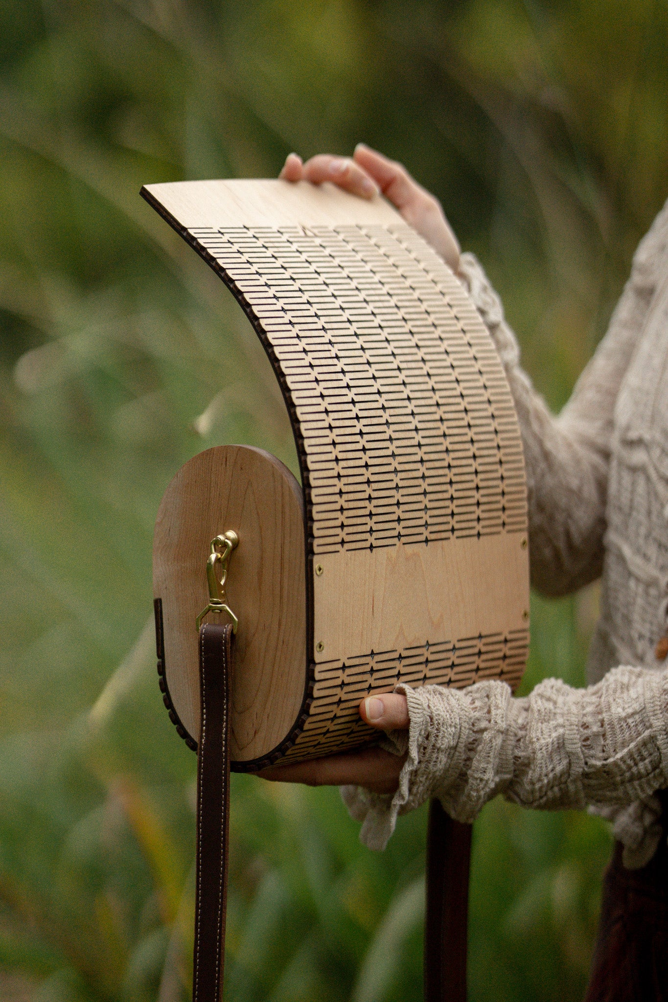 The Iselin Ivory is a shoulder bag rooted in nature with its maple body. The living hinge design along with its hidden magnetic, self-aligning closure allows the bag to open with elegance, and to close with a warm, acoustic click. The bag's interior is lined with matte water buffalo leather and each bag comes with an adjustable leather strap.